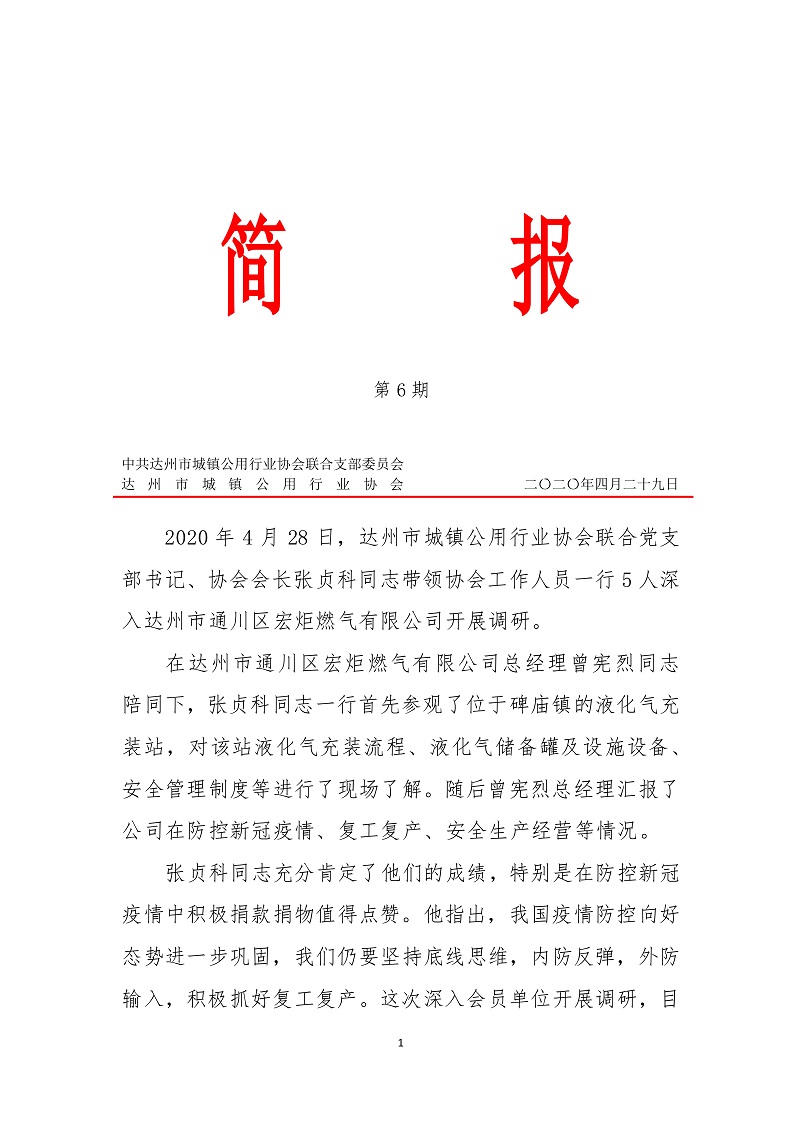 中共達州市城鎮(zhèn)公用行業(yè)協(xié)會聯(lián)合支部委員會2020年第六期簡報