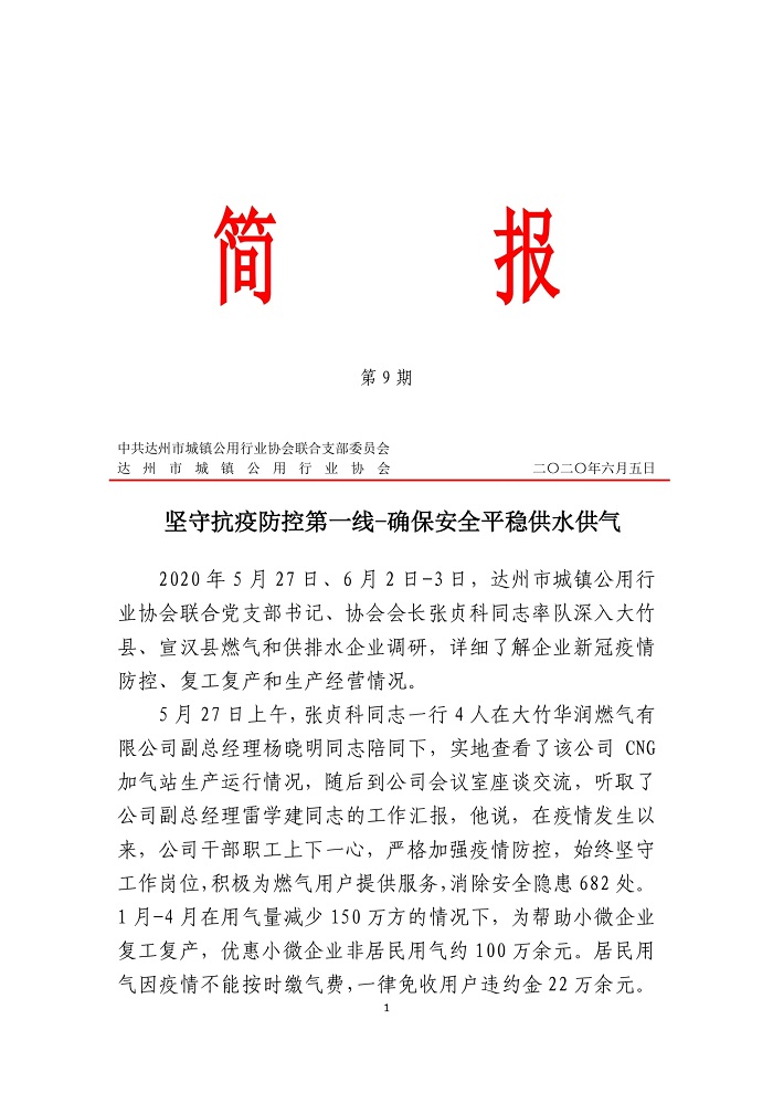 中共達(dá)州市城鎮(zhèn)公用行業(yè)協(xié)會聯(lián)合支部委員會2020年第九期簡報