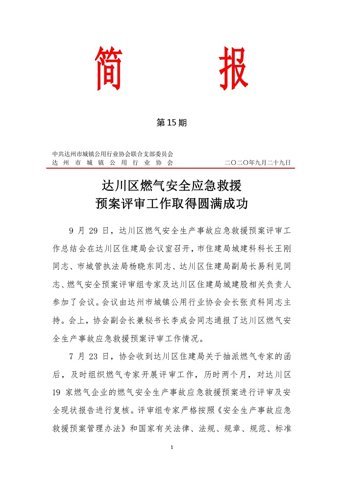 中共達(dá)州市城鎮(zhèn)公用行業(yè)協(xié)會(huì)聯(lián)合支部委員會(huì)2020年第十五期簡(jiǎn)報(bào)