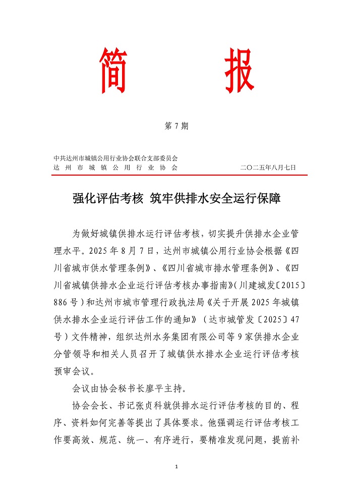 達州市城鎮(zhèn)公用行業(yè)協(xié)會2025年第八期簡