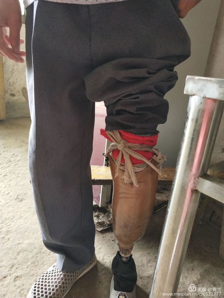 眼前這位身材纖瘦但精神飽滿的男子,第一次見他時并未發(fā)現(xiàn)與常人有異,但聽他自我介紹時說今年49歲了,要不是安的假肢一定還可以做更多的活兒把家庭支撐好。他撩開空蕩蕩的左邊褲腿,果然一只假肢立在我們跟前。