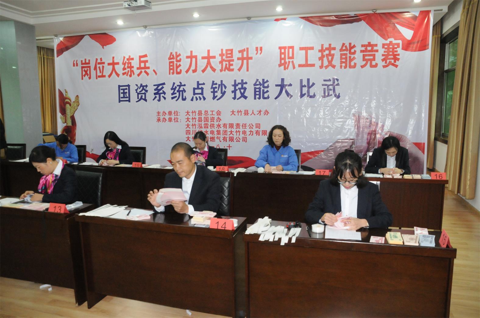 泓霖供水公司參加國資系統(tǒng)2018年點鈔技能大比武獲佳績。為全面提升國資系統(tǒng)窗口服務(wù)人員綜合素質(zhì),10月19日,由大竹縣總工會、縣人才辦主辦,縣國資辦、大竹泓霖供水公司、大竹華潤燃?xì)夤尽⑺拇ㄊ∷娂瘓F(tuán)大竹電力公司承辦的“崗位大練兵、能力大提升”國資系統(tǒng)點鈔技能大比武在泓霖供水公司隆重舉行。