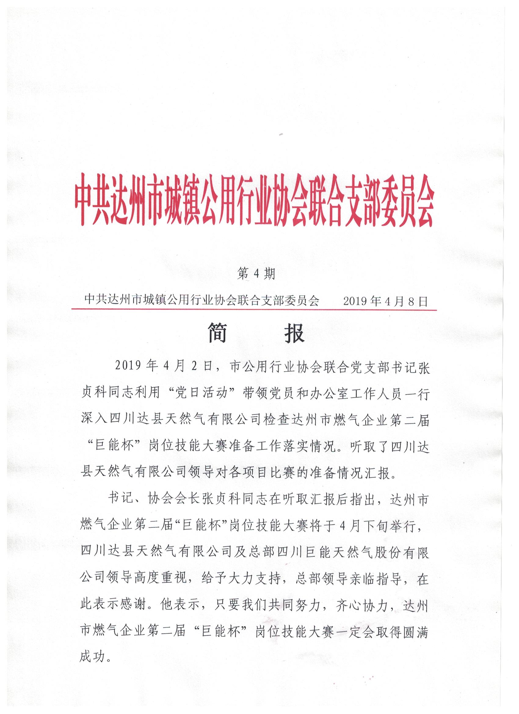 中共達州市城鎮(zhèn)公用行業(yè)協(xié)會聯(lián)合支部委員會2019年第四期簡報