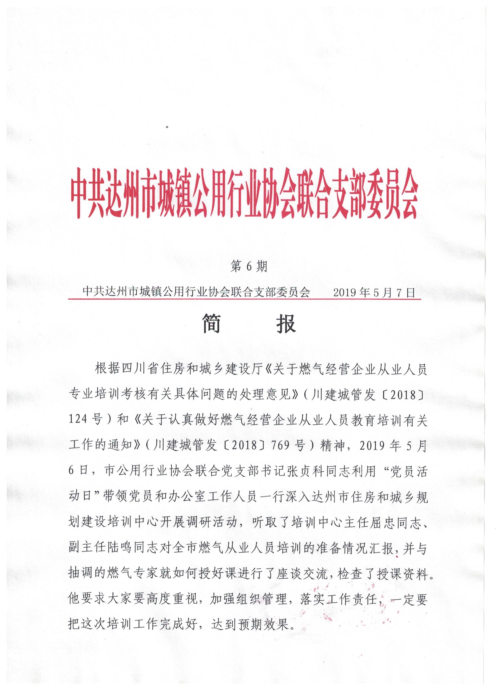 中共達(dá)州市城鎮(zhèn)公用行業(yè)協(xié)會聯(lián)合支部委員會2019年第六期簡報