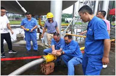 區(qū)域公司副總余志平,LNG供應(yīng)專(zhuān)家唐偉、張正進(jìn)行現(xiàn)場(chǎng)技術(shù)指導(dǎo)