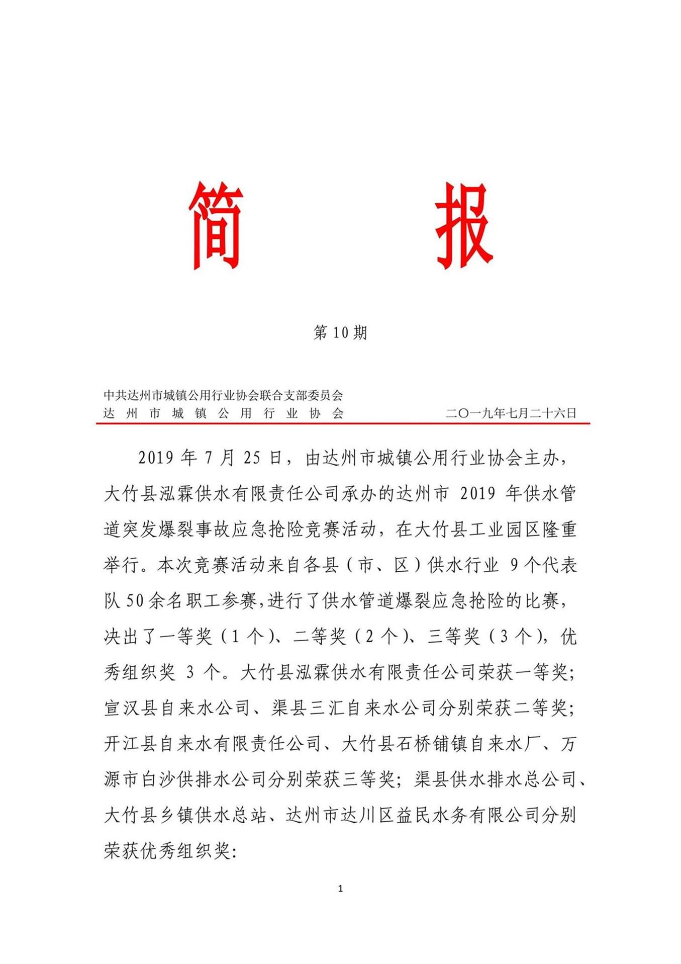 中共達州市城鎮(zhèn)公用行業(yè)協(xié)會聯(lián)合支部委員會2019年第十期簡報