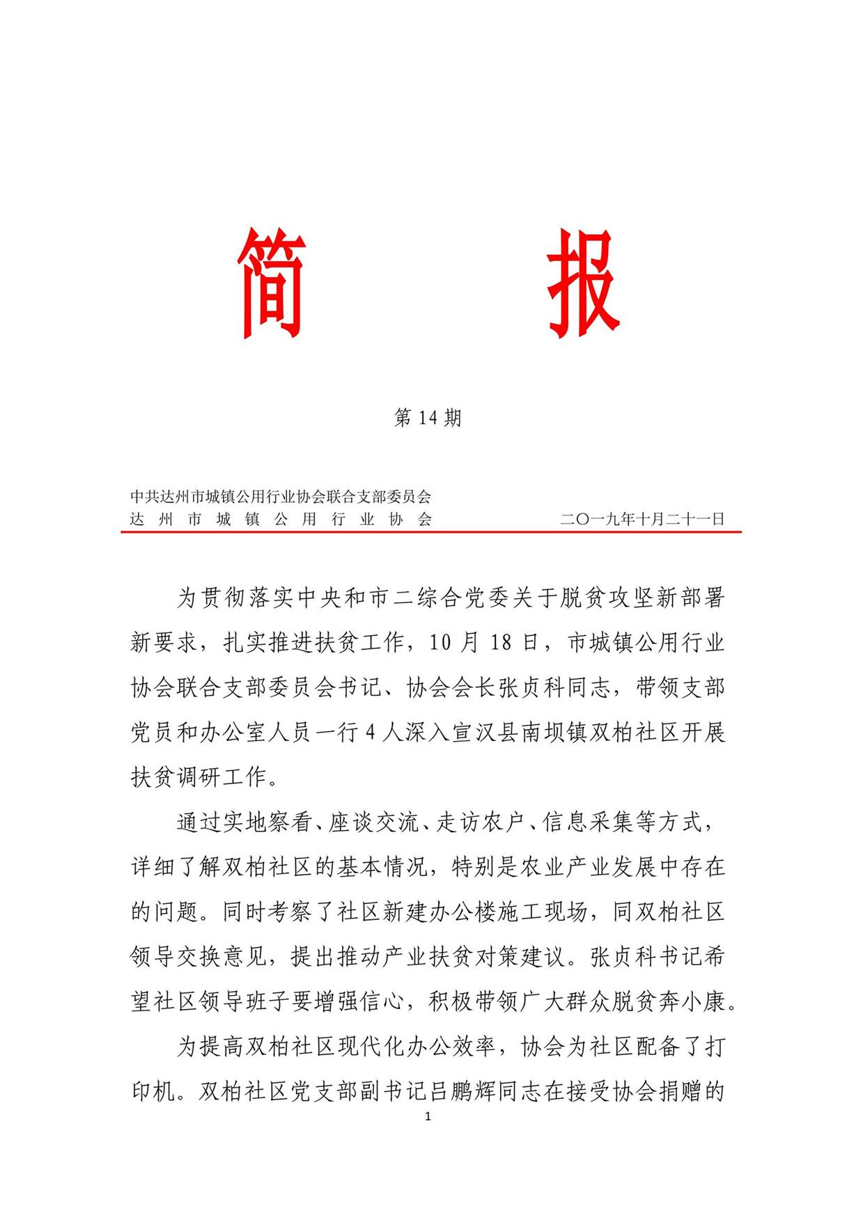 中共達州市城鎮(zhèn)公用行業(yè)協(xié)會聯(lián)合支部委員會2019年第十四期簡報