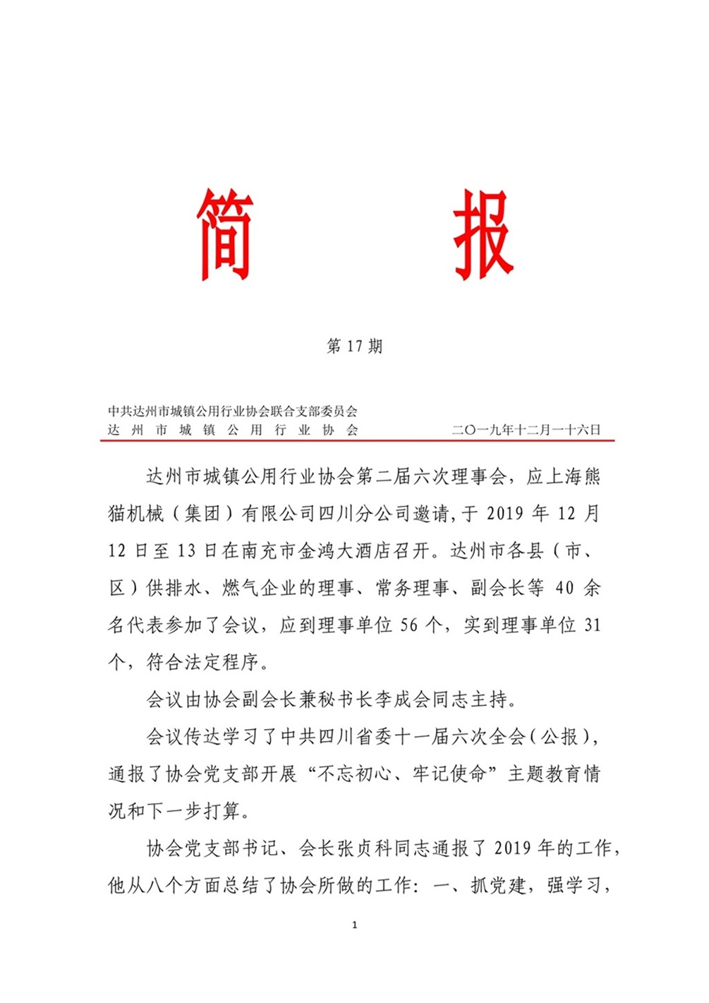 中共達(dá)州市城鎮(zhèn)公用行業(yè)協(xié)會聯(lián)合支部委員會2019年第十七期簡報