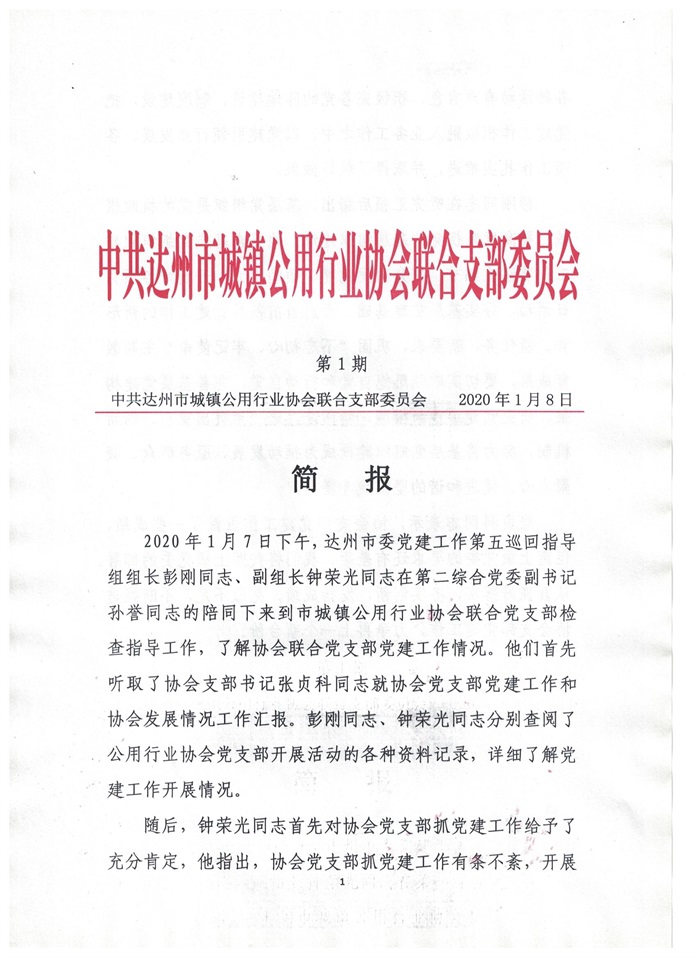 中共達(dá)州市城鎮(zhèn)公用行業(yè)協(xié)會(huì)聯(lián)合支部委員會(huì)2020年第一期簡(jiǎn)報(bào)