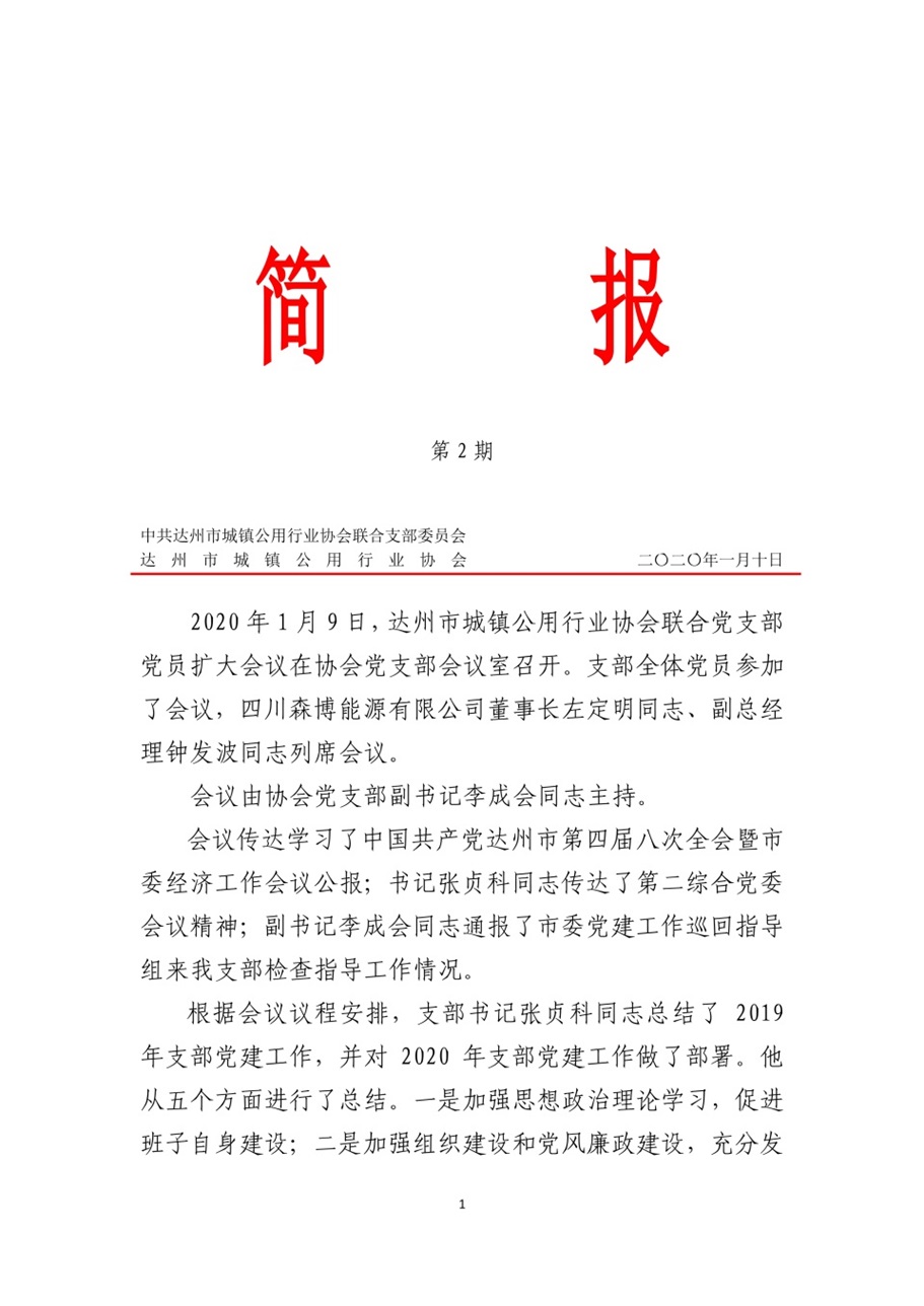 中共達(dá)州市城鎮(zhèn)公用行業(yè)協(xié)會(huì)聯(lián)合支部委員會(huì)2020年第一期簡報(bào)
